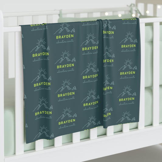 Green "Adventure Awaits" Personalized Baby Blanket