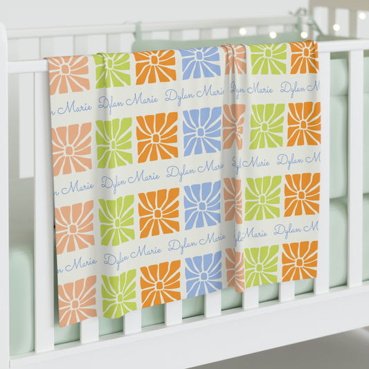 Multi-colored Boho Flowers Personalized Baby Blanket