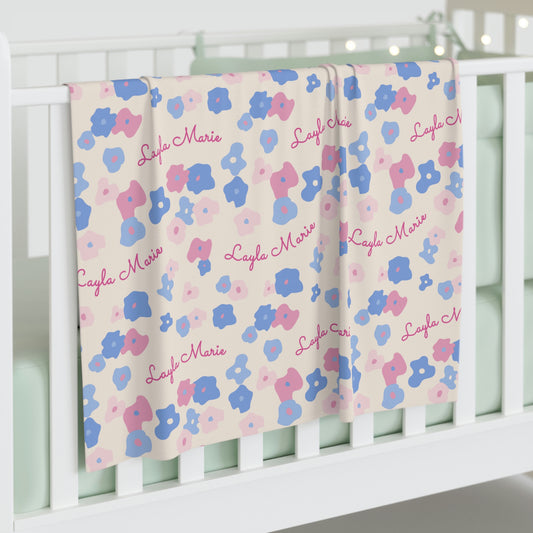 Pink Boho Flowers Personalized Baby Blanket