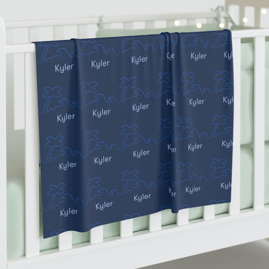 Surf & Palm Tree Personalized Baby Blanket